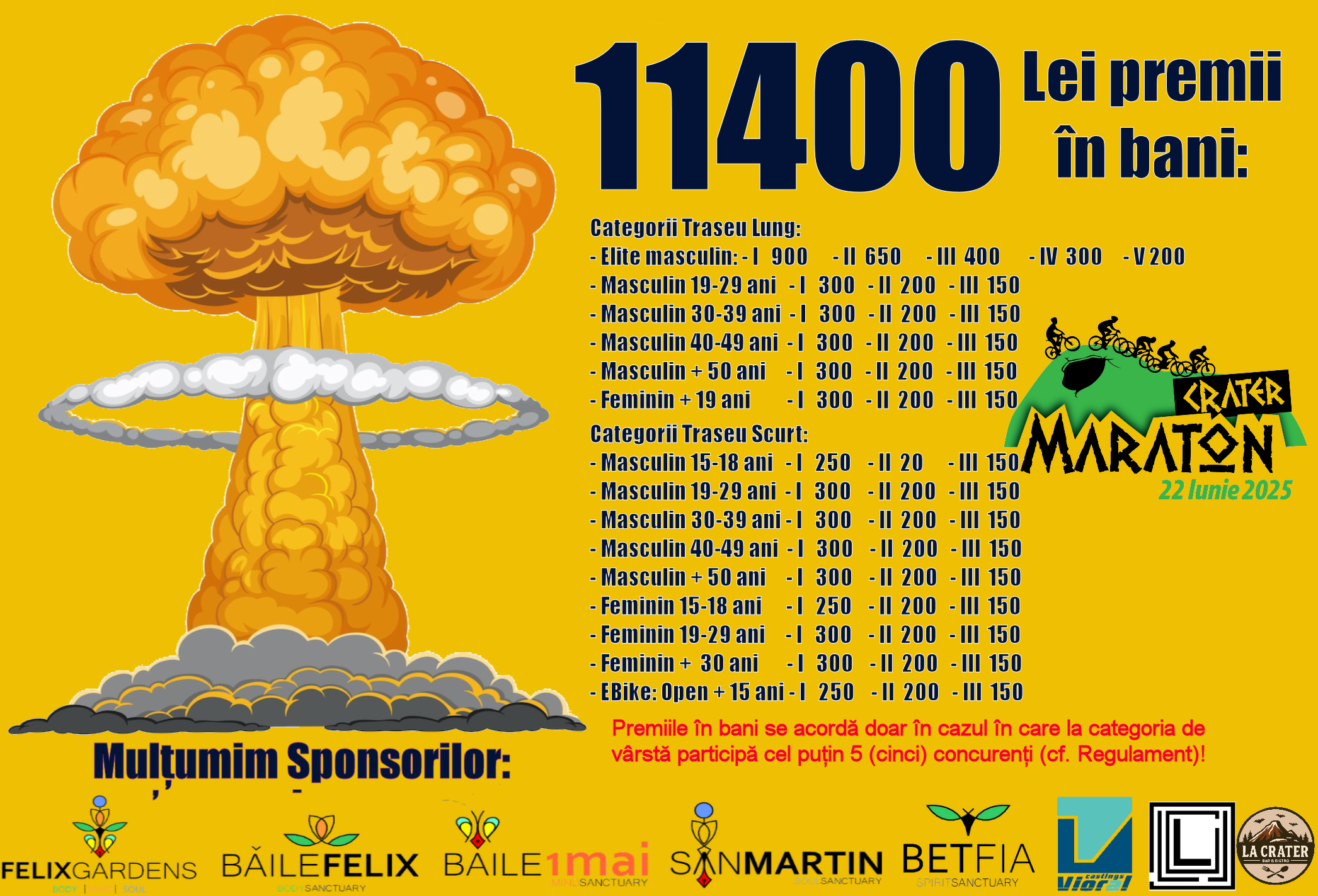 Premii în bani la toate categoriile de la Traseul Scurt și Lung.